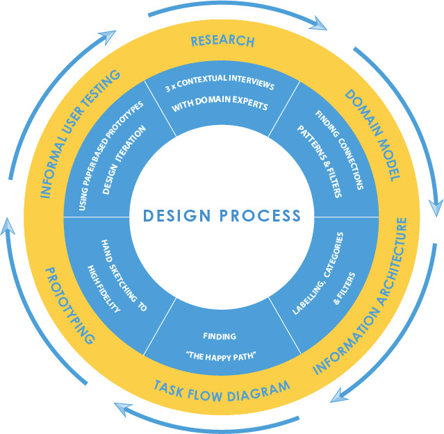 This domain model was a vital tool for conceptualising categories, taxonomies and metadata. I chose a hybrid navigation system, that is both task and topic based with multiple sets of filters, what Spencer (2010) refers to as an ‘ambiguous classification scheme’. As the domain model shows, there are contrasting clusters of attributes that are mirrored on either side of the model, defined in relation to two key audiences.